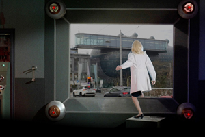 Was wäre, wenn wir uns einfach zwischen Nachrichten und fiktiven Welten hin- und her bewegen könnten, seien es Science-Fiction-Filme oder KI-generierte Fake-Realitäten? Würden wir es bemerken oder sind diese Welten schon so ununterscheidbar geworden, dass wir sie alle für gleichermaßen wahr – oder Fake – halten würden?In Michael Gülzows Videoinstallation, die rund um eine neue Drei-Kanal-Videoarbeit aufgebaut ist, wie auch in dem von ihm gestalteten Trailer zur Diagonale ’26, können die Protagonist*innen nicht nur durch die Zeit reisen, sondern wechseln dabei auch mühelos zwischen Nachrichtensendungen, Szenerien des Science-Fiction-Genres und „alternativen Fakten“. Der Künstler löst durch die raffinierte Montage von Found Footage und selbst gedrehtem Material die Grenzen zwischen Realität und Fiktion auf und lässt sie in einen vielschichtigen und humorvollen Dialog treten. Er untersucht kritisch das Spannungsfeld von zeitgenössischer Bildproduktion (mit ihren sich rasant entwickelnden technologischen Möglichkeiten) und der medialen Konstruktion von Wahrheit (mit ihren beängstigenden Strategien der Verführung und Täuschung). Durch die offensichtliche Bearbeitung und Montage in Glitch- und Retro-Ästhetik schafft er keine Illusionen, sondern macht die Mechanismen medialer Manipulation sichtbar und dekonstruiert durch die Selbstermächtigung der Protagonist*innen postfaktische Narrative.
